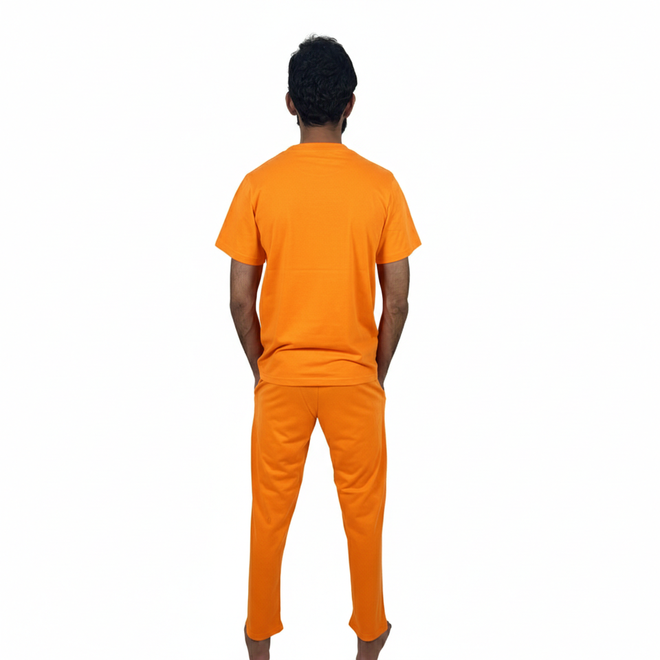 ชุดเสื้อยืดและกางเกงขายาวผู้ชาย ราคาถูก MOQ ต่ำ ผ้าฝ้าย ระบายอากาศดี เหมาะสำหรับใส่หน้าร้อน มีกระเป๋าเสื้อยืดและกางเกงขายาวแบบชุด