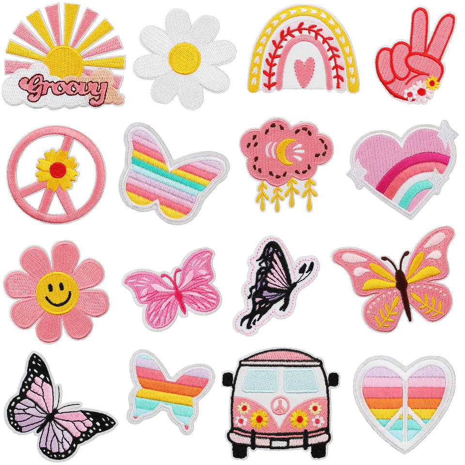 แพทช์ปักลายตัวอักษรกราฟฟิกสีสันสดใสรูปผีเสื้อสำหรับติดเสื้อผ้า ขนาดเล็ก รับทำตามสั่ง รีดติดได้