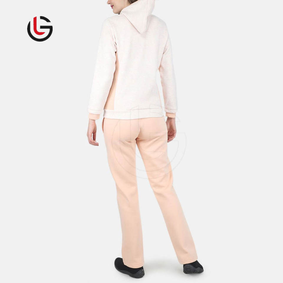 ชุดวอร์มผ้าฟลีซสีล้วนของผู้หญิงผ้าคอตตอนผสมโพลีเอสเตอร์สีทึบออกแบบได้ตามต้องการสำหรับกลางแจ้งฤดูหนาวแบบมีฮู้ด