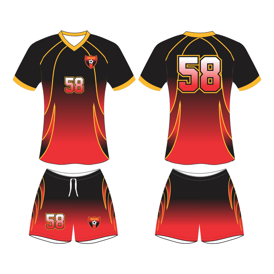 ชุดฟุตบอลแบบ sublimated สั่งทำได้ตามต้องการ พร้อมปักชื่อทีม/หมายเลข ผลิตจากผ้าโพลีเอสเตอร์ 100% ระบายอากาศได้ดี รวมถึงถุงเท้าและกระเป๋า