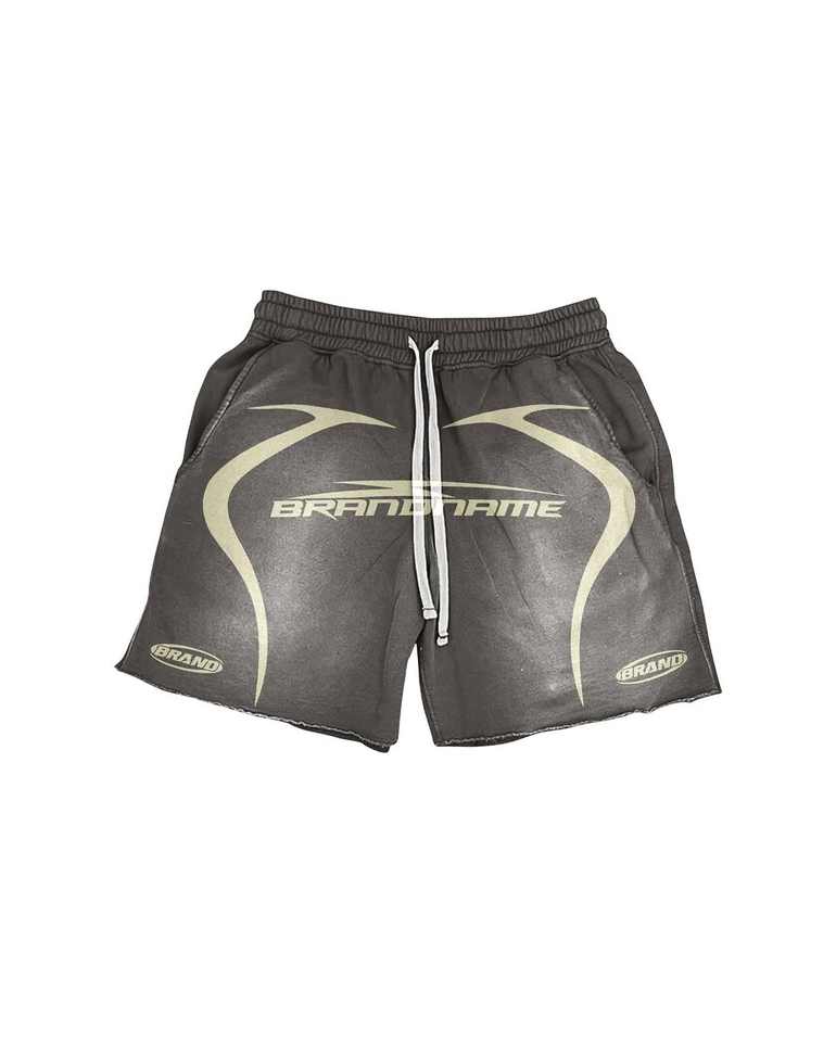 กางเกงขาสั้นผ้าฝ้ายเทอร์รี่สำหรับผู้ชายกางเกงขาสั้นล้างกรดแบบผูกเชือกกระเป๋าข้างสั้นแบบวินเทจตามสั่ง