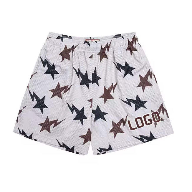 กางเกงขาสั้นตาข่ายระบายอากาศพิมพ์ลายดิจิตอลสำหรับฤดูร้อน OEM MOQ ต่ำ กางเกงขาสั้นตาข่ายสำหรับออกกำลังกาย เล่นบาสเก็ตบอล และสวมใส่สบายๆ สำหรับผู้ชาย