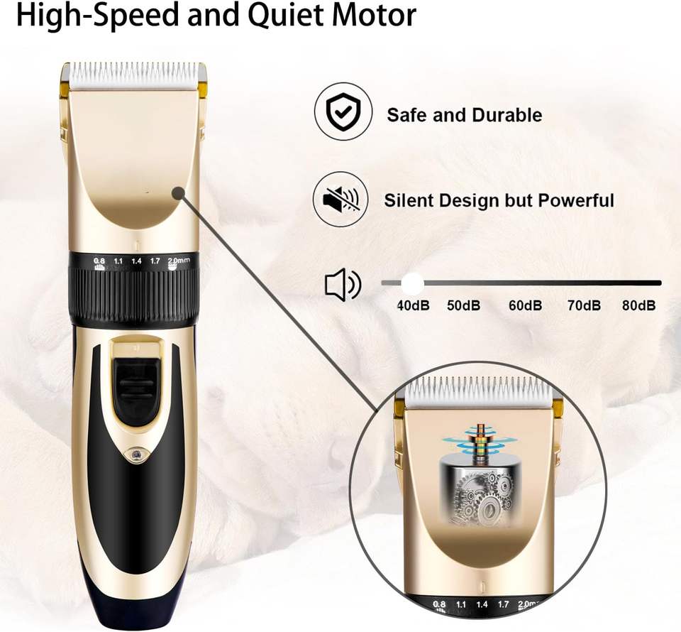 ชุดตัดแต่งขนสุนัขแบบไร้สายแบบชาร์จไฟได้เครื่องเล็มขนสุนัขเสียงรบกวนต่ำ
