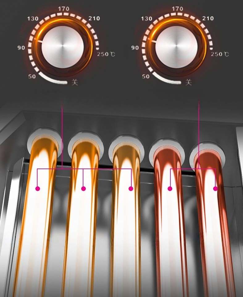 เตาปิ้งย่างไฟฟ้าเสียงเบาและเครื่องทอดอาหารว่างแบบลูกกลิ้ง 5 ลูกกลิ้ง สำหรับย่างฮอทดอก ใช้ในบ้านหรือร้านอาหาร