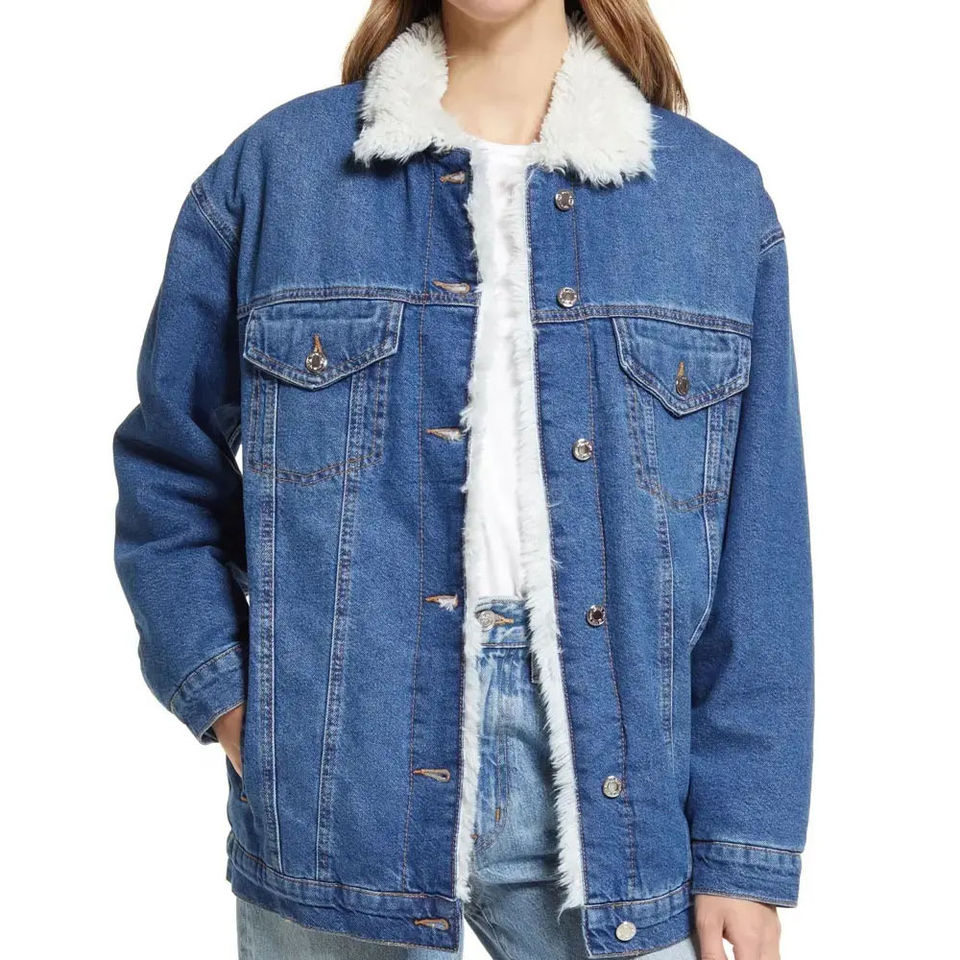 แจ็กเก็ตยีนส์100% สีล้วนมีกระเป๋าสำหรับผู้ชายเสื้อแจ็คเก็ตยีนส์