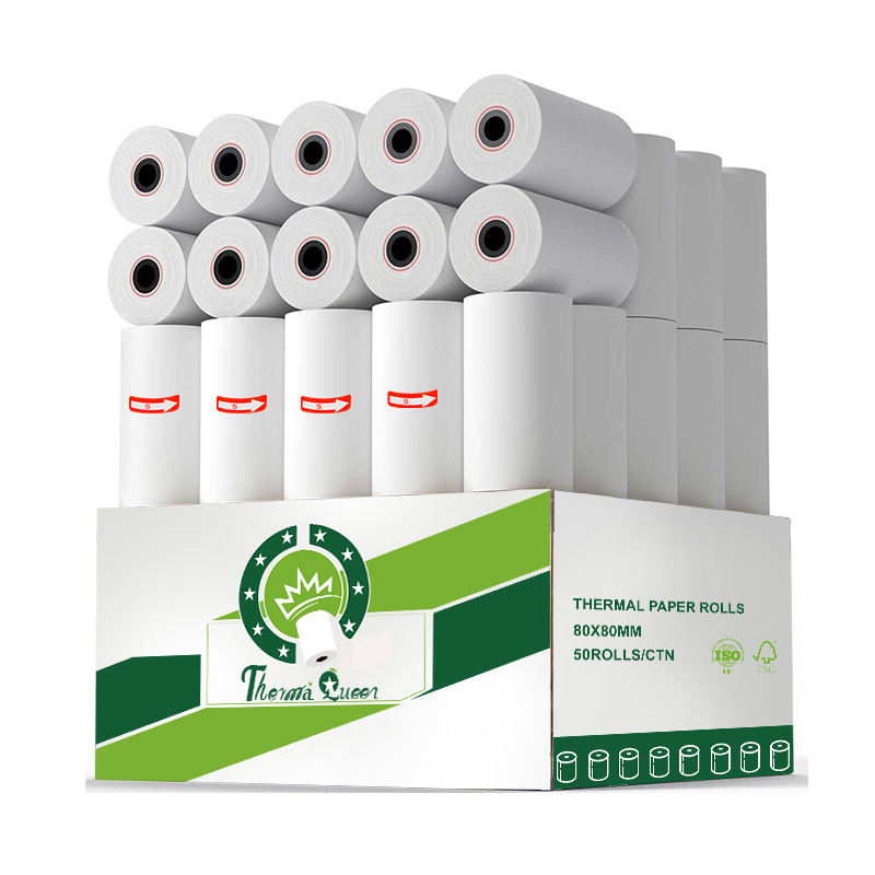 ม้วนกระดาษความร้อนพร้อมการพิมพ์80X80 80X50M 57X40Mm 15X10Cm ได้50ม้วนต่อกล่อง