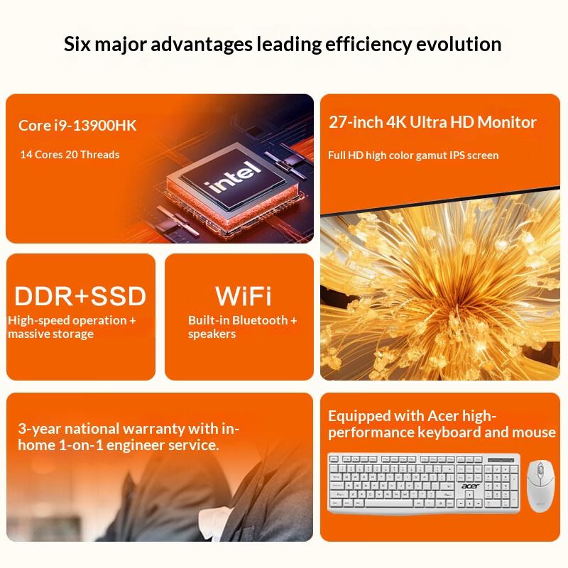 จอคอมพิวเตอร์แบบ all-in-one 27นิ้ว acers 4K I9-13900HK หลัก16G 1TB SSD สำหรับธุรกิจและใช้ภายในบ้าน