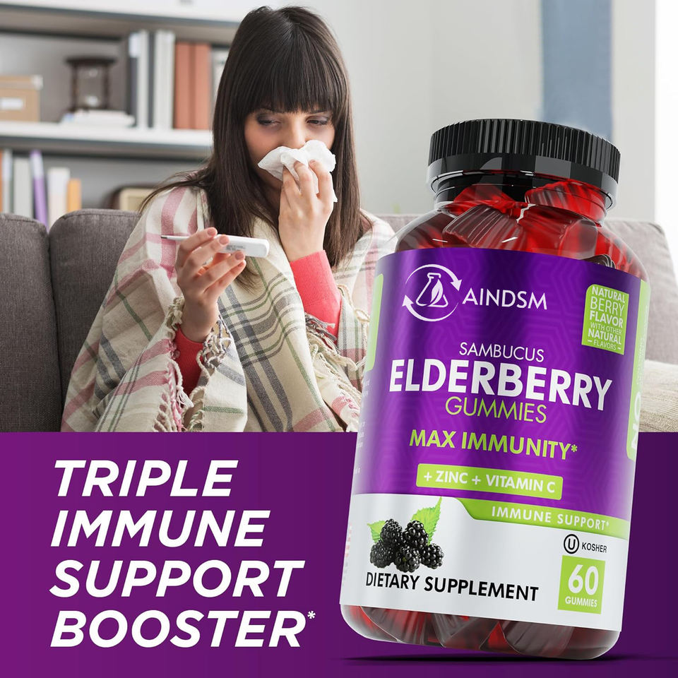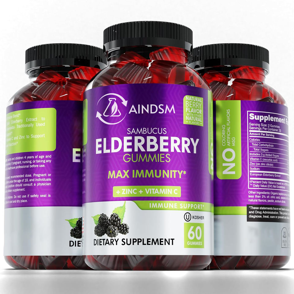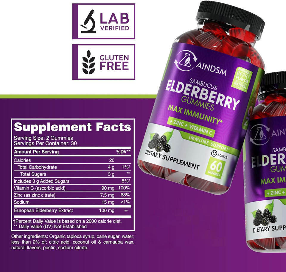 Elderberry gummies สีดำมอสจากทะเลมังสวิรัติ Elderberry สนับสนุนภูมิคุ้มกันและสารต้านอนุมูลอิสระ