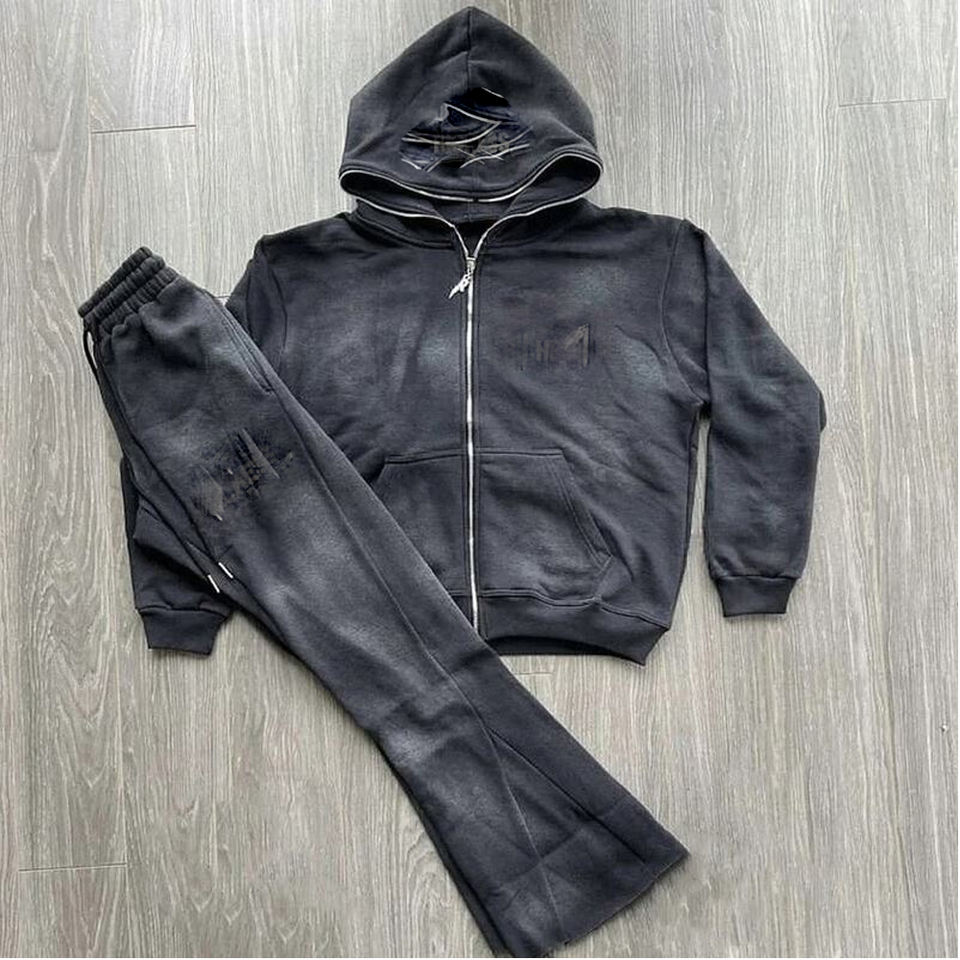 ชุดวอร์มแบบย้อมสีเอซิดราคาประหยัดสำหรับผู้ชาย ผ้าฝ้าย 100% ชุดวอร์มและเสื้อฮู้ดคุณภาพสูง ชุดวอร์มแบบย้อมสีเอซิดแบบมีซิป
