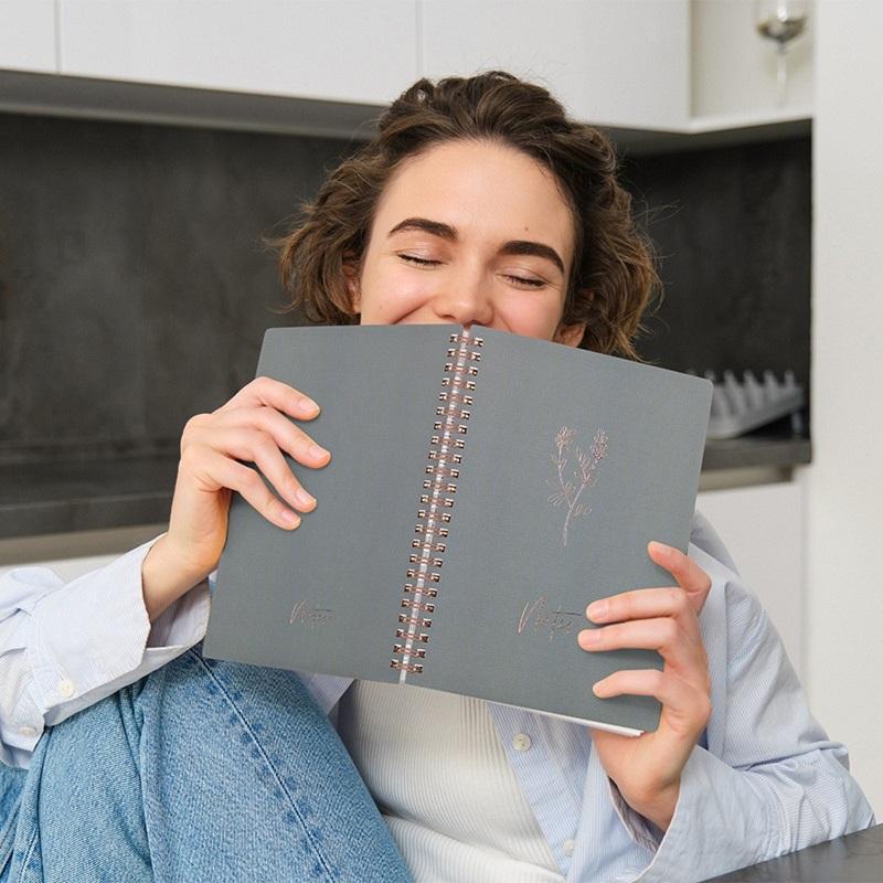 สมุดโน้ตแบบกำหนดเองราคาประหยัด ขนาดเล็ก ปกผ้า แบบสันห่วง ปฏิทินตั้งโต๊ะ วางแผนงาน จดบันทึก ไม่มีวันที่ รายสัปดาห์ แบบวางบนโต๊ะ ใช้กับคีย์บอร์ด