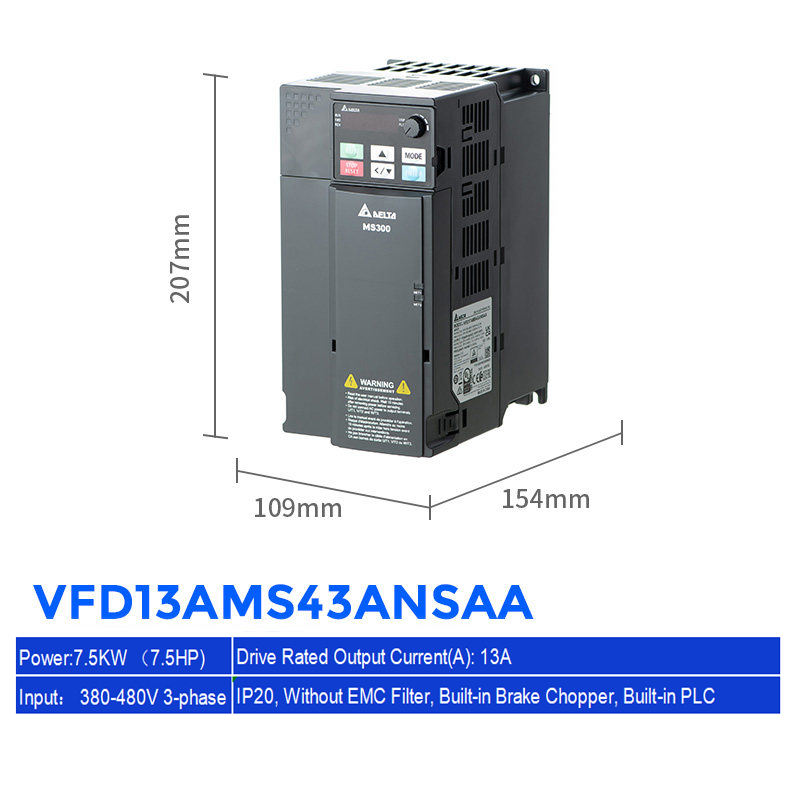อินเวอร์เตอร์ Delta ของแท้รุ่นใหม่ VFD13AMS43ANSAA 5.5KW 380V 3 เฟส สำหรับมอเตอร์ AC ราคาประหยัด เหมาะสำหรับปั๊ม
