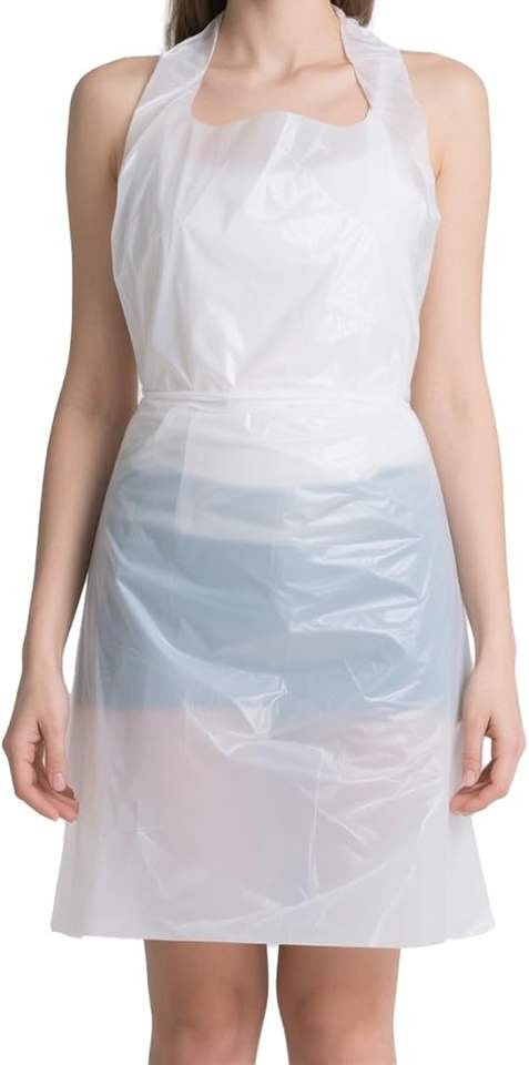 ผ้ากันเปื้อนครัวแบบใช้แล้วทิ้ง ราคาประหยัด ผลิตจากพลาสติก PE สีพื้น ลายเมสัน