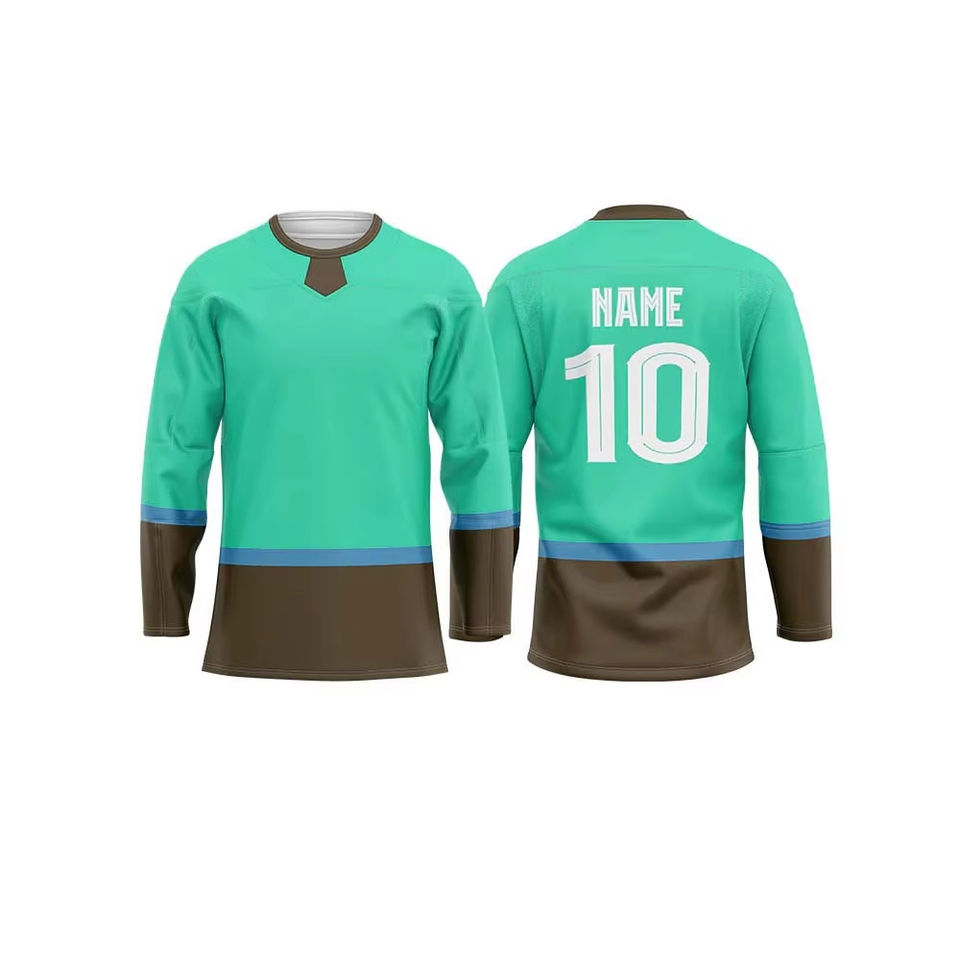 เสื้อเจอร์ซีย์เล่นฮ็อกกี้น้ำแข็งแห้งเร็วเสื้อเจอร์ซี่พิมพ์โลโก้แบบมืออาชีพเสื้อทีมฮอกกี้