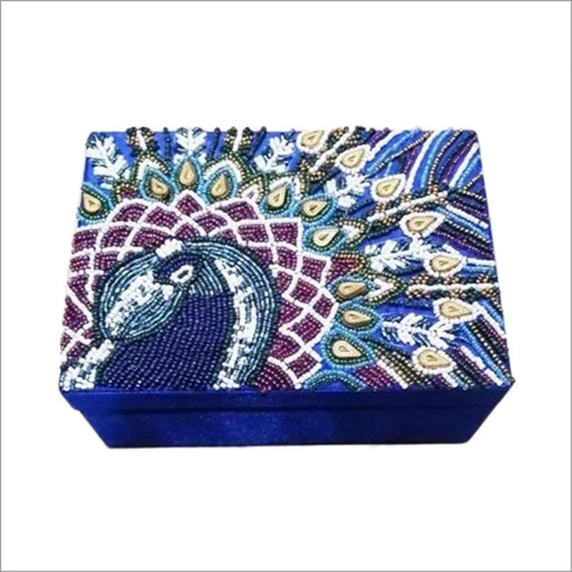 กล่องเก็บเครื่องประดับกำมะหยี่งานทำมือพร้อมดีไซน์นกยูงประดับอัญมณีและแฟชั่นเรืองแสง