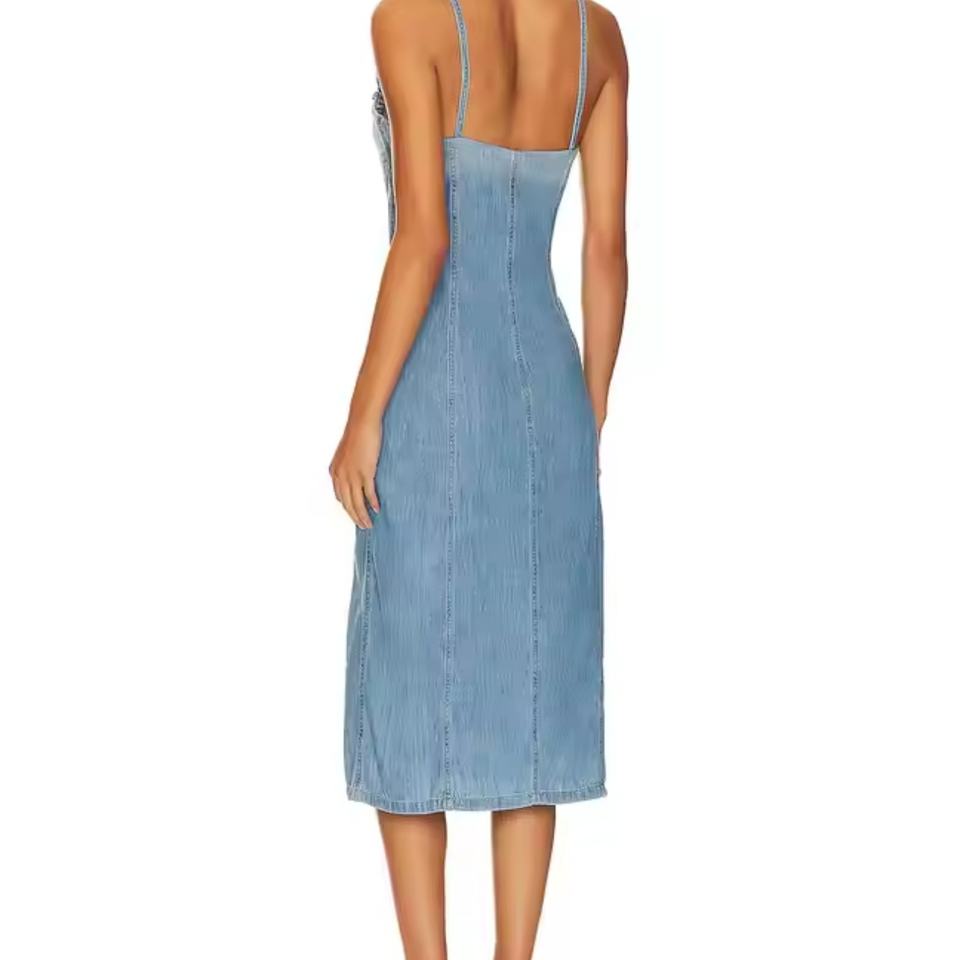 เดรสยีนส์ราคาถูกคุณภาพสูงสำหรับผู้หญิง สายเดี่ยวเซ็กซี่ ดีไซน์เรียบร้อย ชุดเดรสยีนส์น่ารักใส่ได้ทุกวัน