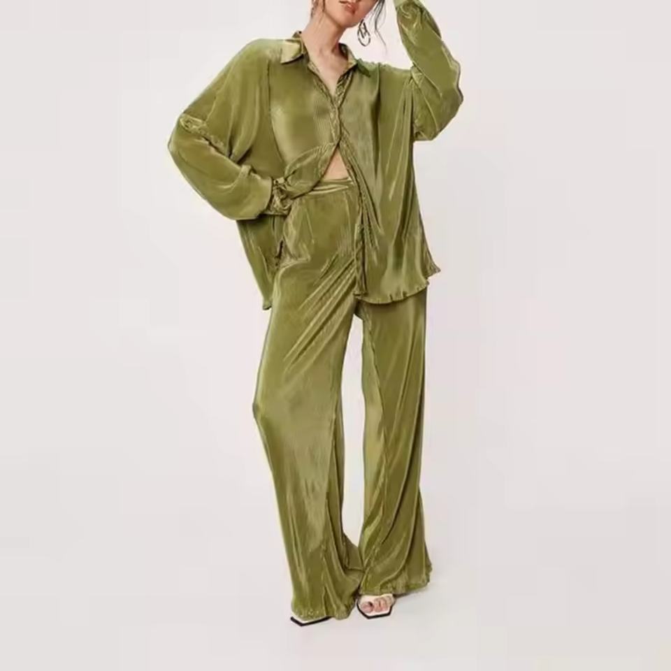 ชุดผ้าลินินฤดูใบไม้ร่วงราคาถูกสุดฮิต เสื้อหลวมสบายๆ สไตล์ลำลองสำหรับผู้หญิง กางเกงเอวสูง ชุดเซ็ตสองชิ้น OOTD