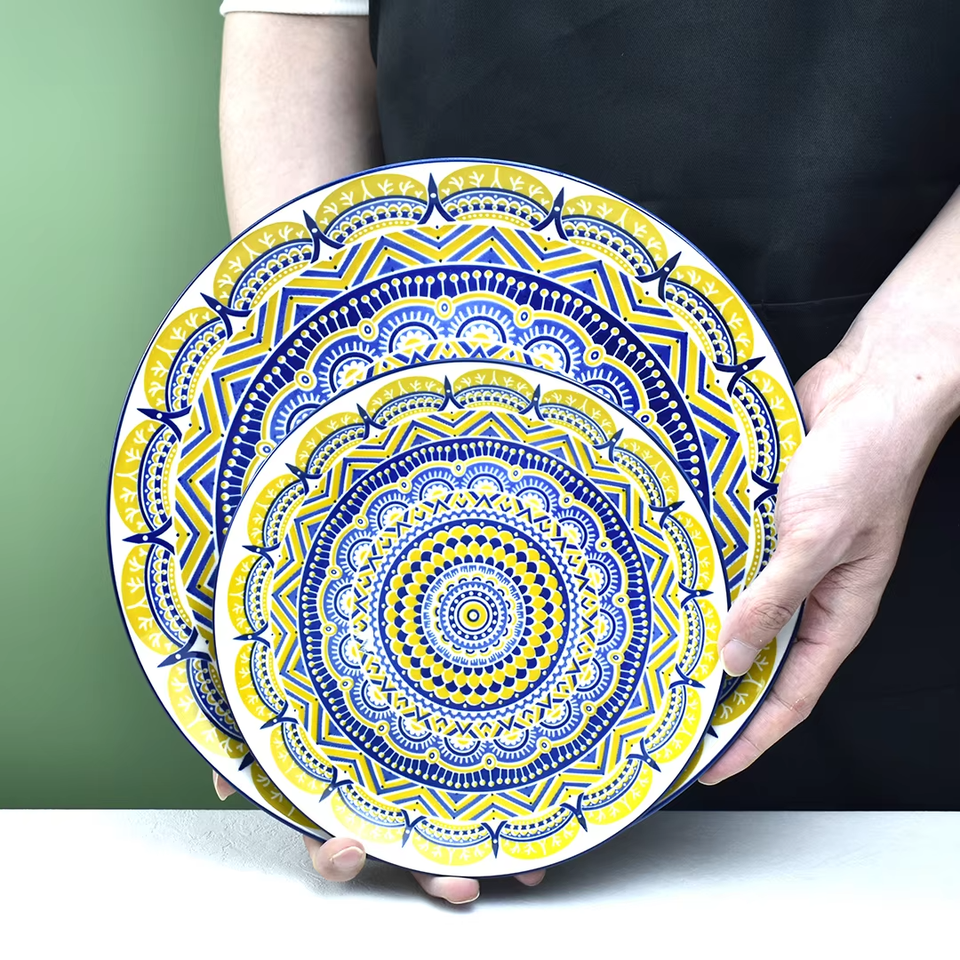 ชุดของขวัญจานโบฮีเมียนทรงลึกเคลือบสีผลไม้เซรามิก8 10นิ้วสำหรับใช้ในครัวเรือน