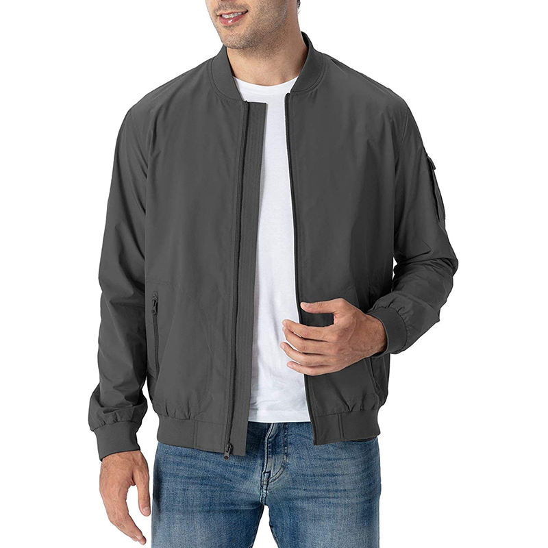 เสื้อแจ็กเก็ตบอมเบอร์สำหรับผู้ชายเสื้อแจ็กเก็ตเบสบอลเลตเตอร์แมนดีไซน์แบบถักระบายอากาศได้ดี