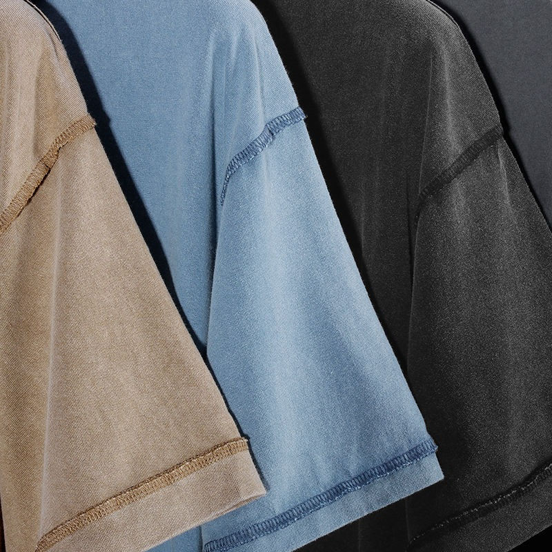 เสื้อยืดผู้ชายผ้ายีนส์ฟอกสีแบบสั่งทำพิเศษ