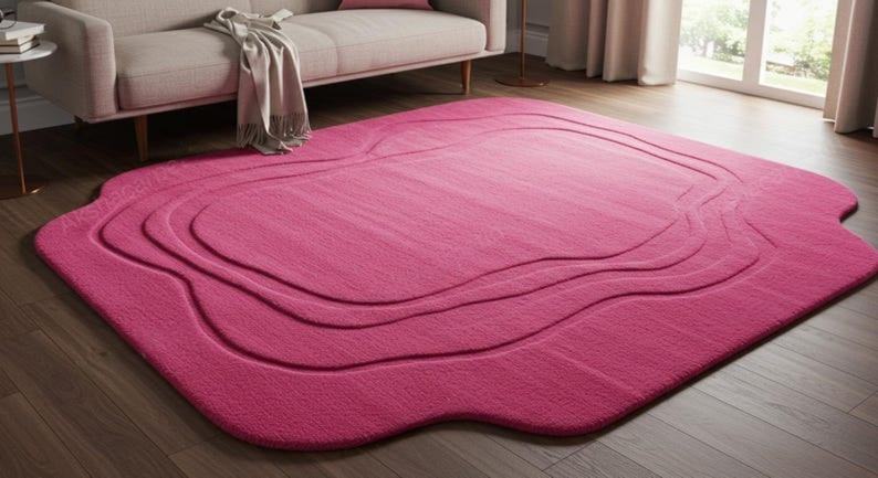 Item Name:Hand-Tufted pink color wool Wave Rug
