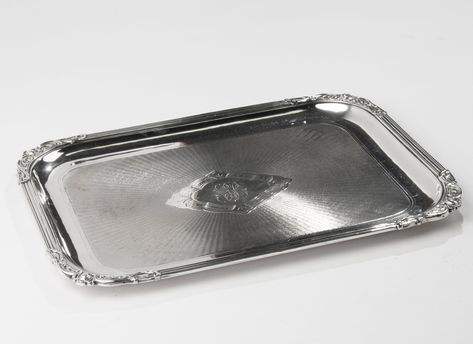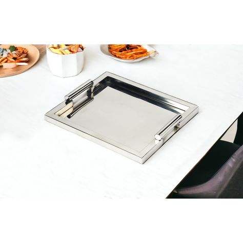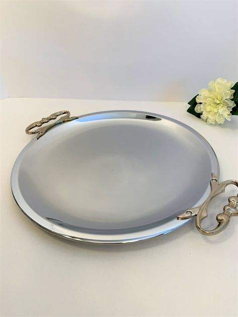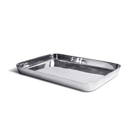 ถาดเสริฟโลหะอะลูมิเนียมงานแฮนด์เมดชุดสำหรับร้านอาหารแบนสีเงินแบบใหม่ชิ้นเดียว