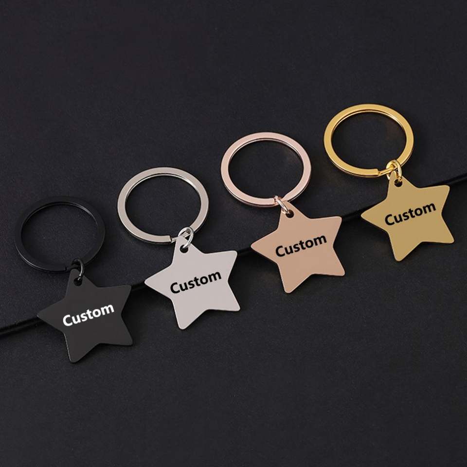 พวงกุญแจสแตนเลสแบบเปล่า ดีไซน์รูปดาว ราคาประหยัด รองรับการสลักด้วยเลเซอร์