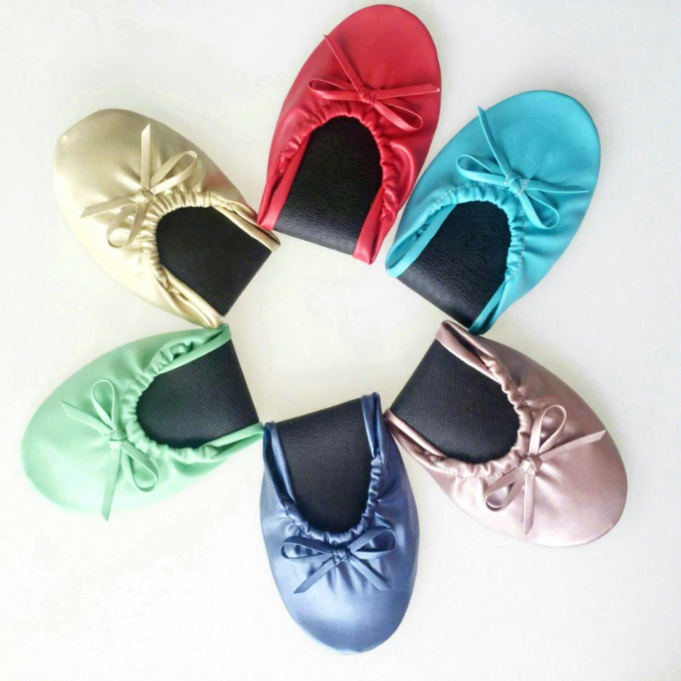 รองเท้าบัลเล่ต์พับได้ราคาถูกสำหรับผู้หญิง ใส่ในกระเป๋า เหมาะสำหรับงานแต่งงาน