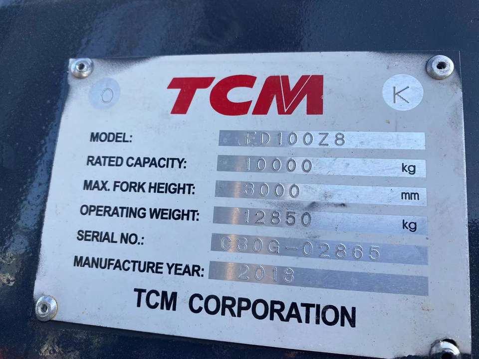 รถยก TCM มือสอง 10 ตัน ราคาถูก ชั่วโมงการทำงานต่ำ เหมาะสำหรับงานโลจิสติกส์ ก่อสร้าง และขนถ่ายวัสดุ