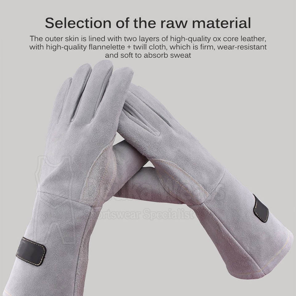 ถุงมือทำงานคุณภาพสูงแบบกำหนดเองพร้อมโลโก้ขายส่ง ถุงมือเชื่อมหนังกันไฟแบบกำหนดเองพร้อมซับในขนแกะ