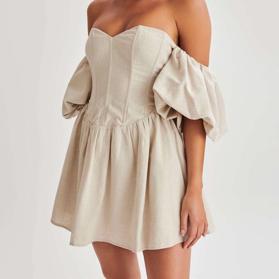 เดรสฤดูใบไม้ร่วงราคาถูกสำหรับผู้หญิง เดรสผ้าลินินคอตตอนแบบเรียบหรู ไหล่เดียว เซ็กซี่ สไตล์มินิ Y2k OOTD