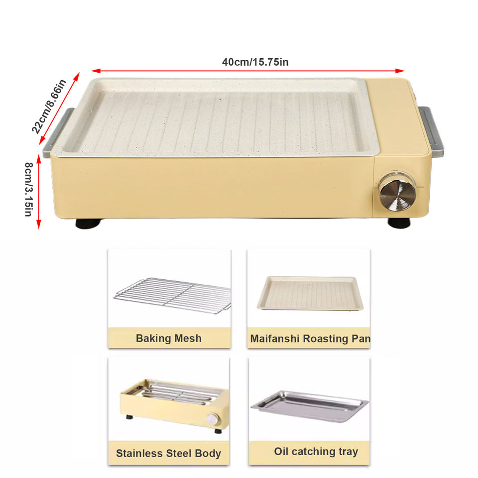 Dismountable Oil Collector, Non-Stick Cooking Surface, Temperature Control, Smokelessfunction