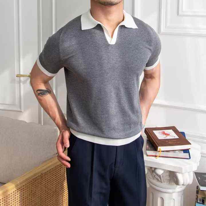 เสื้อโปโลแขนสั้นราคาส่งคุณภาพสูงสำหรับผู้ชาย ปักลายสไตล์อเมริกัน เสื้อยืดคอปกโปโลผู้ชาย เสื้อกอล์ฟวินเทจ