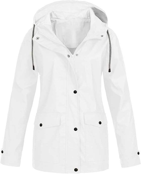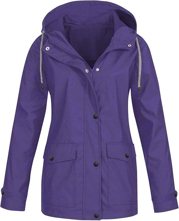 เสื้อเทรนช์โค้ทผู้หญิงยาวปานกลางมีฮู้ดเสื้อแจ็กเก็ตกันฝนลายทางสีทึบสำหรับกลางแจ้งเสื้อกันฝนมีฮู้ดกันลม