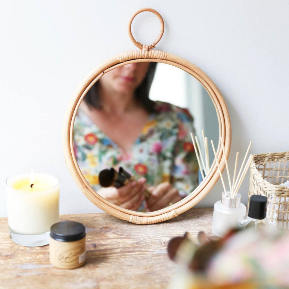 กระจกติดผนังทรงกลมติดผนังหวายธรรมชาติ,กระจกสำหรับตกแต่งบ้านแกะสลักโลโก้ราคาถูกมีคุณภาพสูงสุดทนทาน