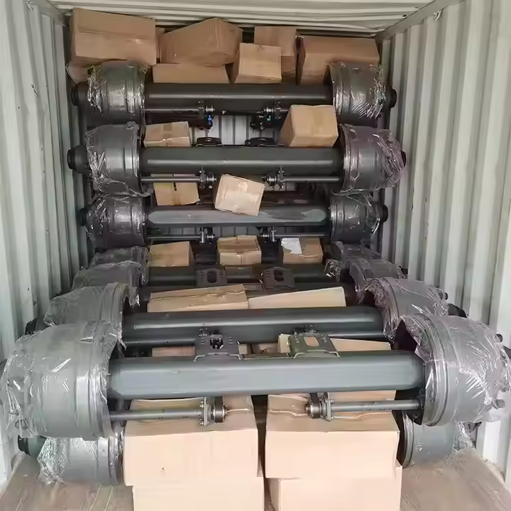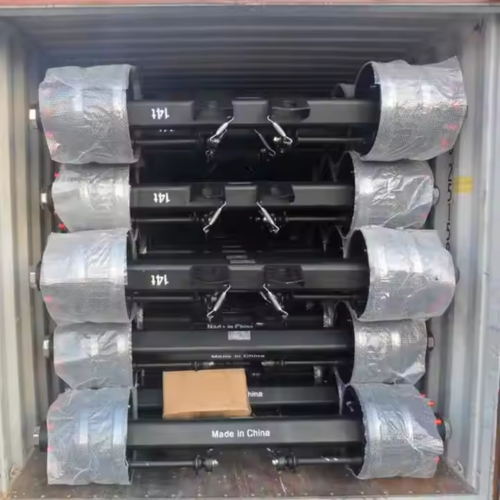 เพลาเหล็ก FUWA รุ่น M ราคาประหยัด สำหรับรถบรรทุกพ่วงผสมคอนกรีต ปี 1996-1999 ระบบกันสะเทือนรถพ่วง ผลิตที่ซานตง ปรับสภาพใหม่