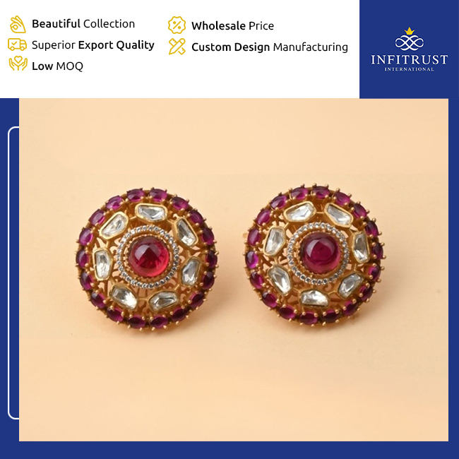 ต่างหูเม็ดเดี่ยวอัญมณีสีขาวและแดงราคาต่ำจากอินเดียผู้ผลิตและผู้ส่งออก