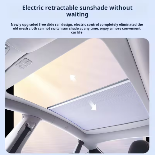 ที่บังแดดหลังคาแบบพับเก็บได้สำหรับรถยนต์เทสล่า รุ่น Y ปี 2021-2024 ราคาประหยัด พร้อมรีโมทคอนโทรล และวัสดุไฟเบอร์บอร์ด