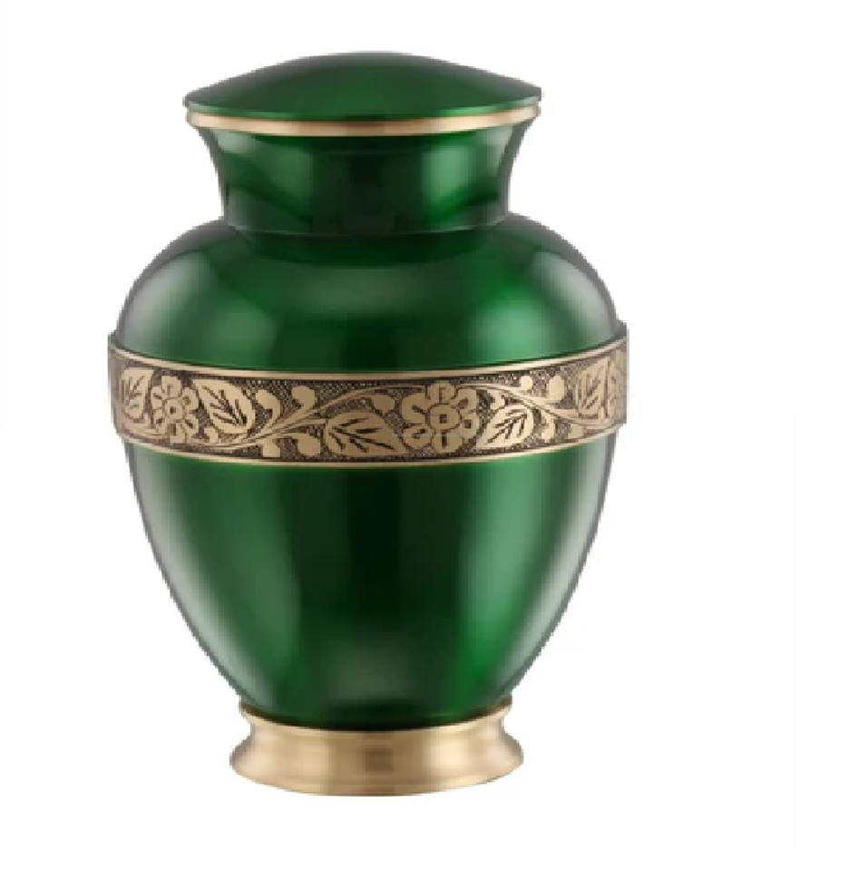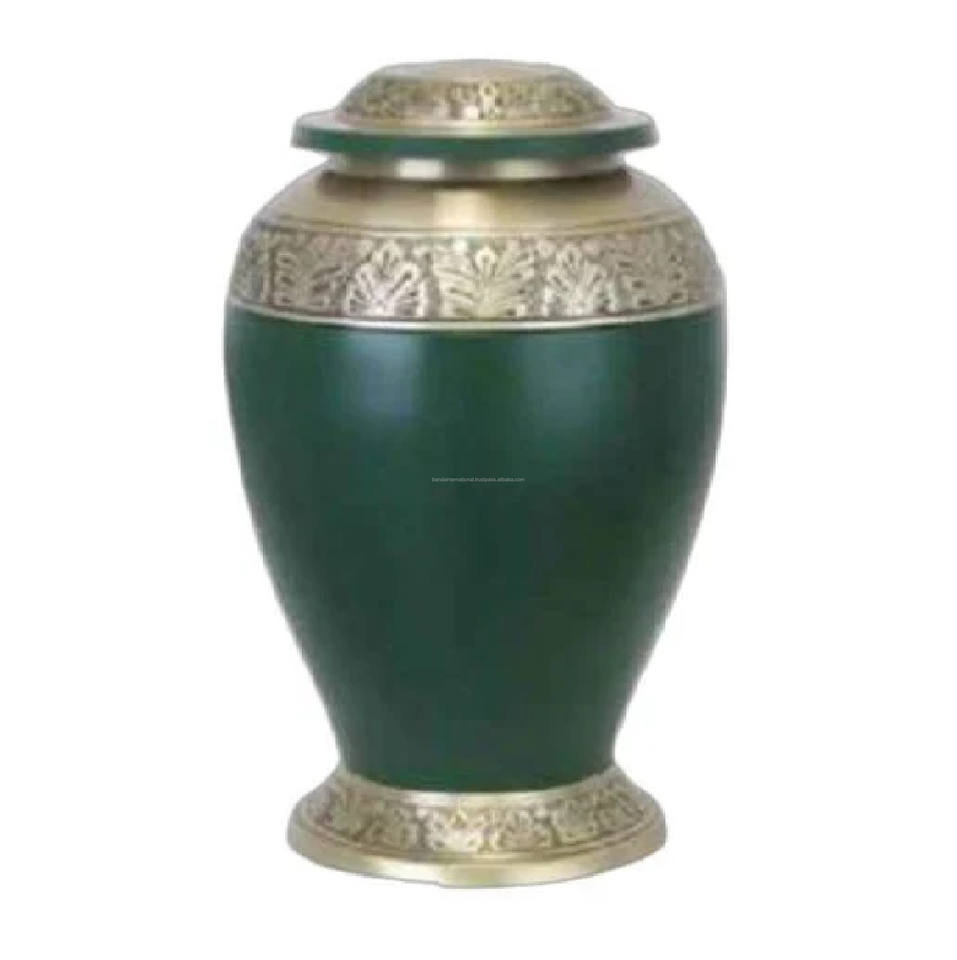 โกศเผาศพโลหะสำหรับผู้ใหญ่โกศสีเขียวและแถบสีดำ