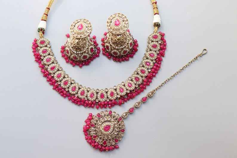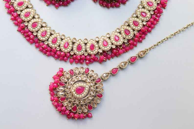 ราคาถูกเครื่องประดับอินเดียสำหรับผู้หญิงชุดเครื่องประดับสร้อยคอลูกปัดชุบทองทำด้วยมือโบราณชุดเครื่องประดับสำหรับเจ้าสาว