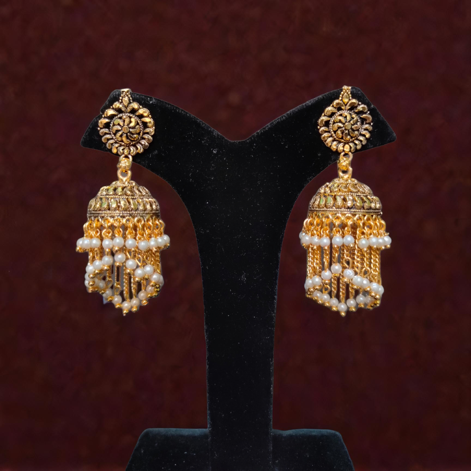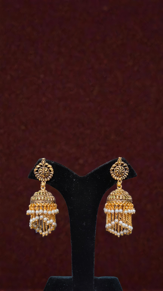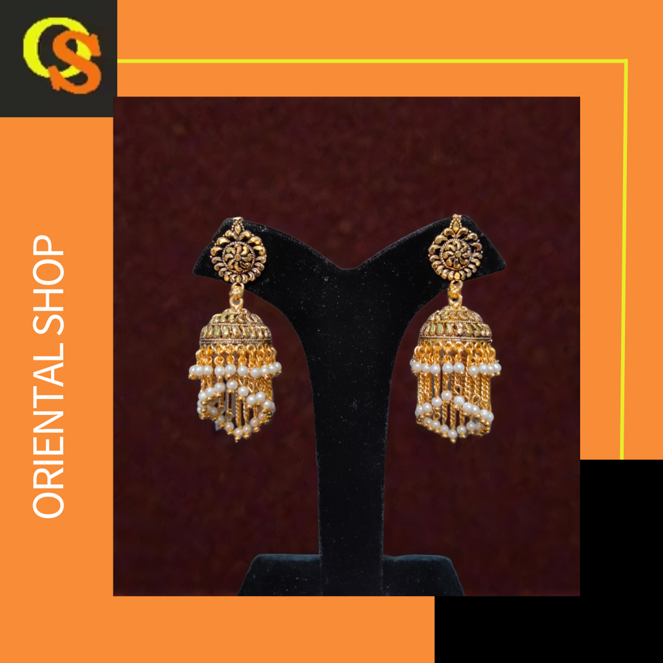 ชุดต่างหูชุบทอง22CT สำหรับผู้หญิงชุดเครื่องประดับต่างหูสไตล์ Jhumka ดีไซน์ไม่เหมือนใคร