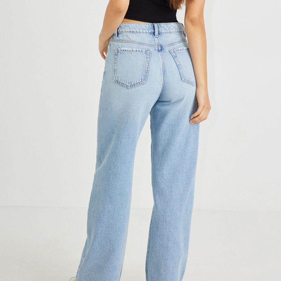 กางเกงยีนส์เดนิมทรงตรงเอวต่ำสำหรับผู้หญิง เนื้อผ้ายืดใส่สบาย มีตัวเลือกป้ายยี่ห้อแบบกำหนดเอง กางเกงผู้หญิงหลากสี