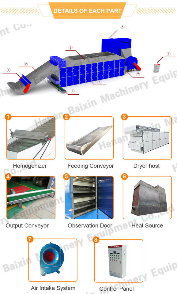 การใช้งาน:เครื่องอบแห้งแบบสายพานตาข่ายใช้สำหรับอบแห้งอาหารผักผลไม้กระเทียมฯลฯ