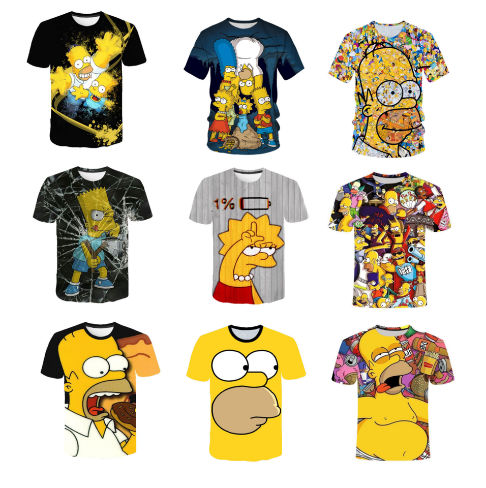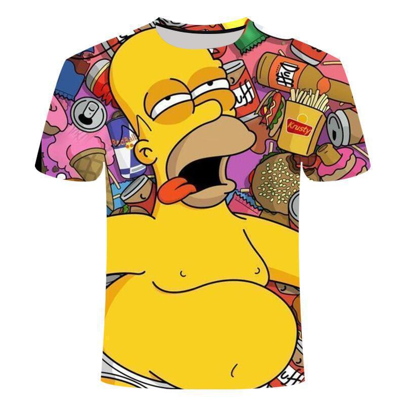 เสื้อยืดแขนสั้นผู้ชายลายซิมป์สันส์พิมพ์ลาย 3 มิติ สไตล์ลำลอง ระบายอากาศได้ดี ทรงหลวม สำหรับฤดูร้อน ราคาส่งถูก