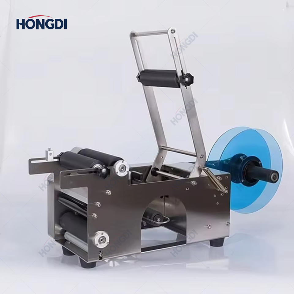 Low-cost compact desktop semi-automatic labeling machine Flexible production for round bottle labeling