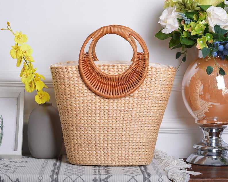 กระเป๋าฟางทำมือสำหรับผู้หญิงโบฮีเมียนจากเวียดนาม
