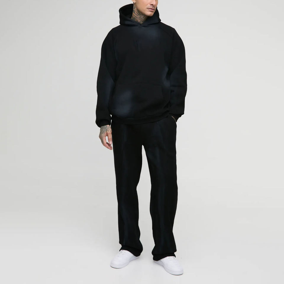 ชุดวอร์มผู้ชายราคาประหยัดสำหรับฤดูหนาว พิมพ์โลโก้ด้วยเทคนิคซิลค์สกรีน สไตล์สตรีทแวร์ สวมใส่สบาย ล้างสีแบบครอสแอซิด ผ้าฝ้าย 100% ชุด 2 ชิ้น