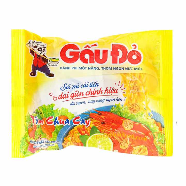 บะหมี่กึ่งสำเร็จรูปกลิ่นหมีแดงบรรจุภัณฑ์ถุงใส่กุ้งรสเปรี้ยวและเผ็ด
