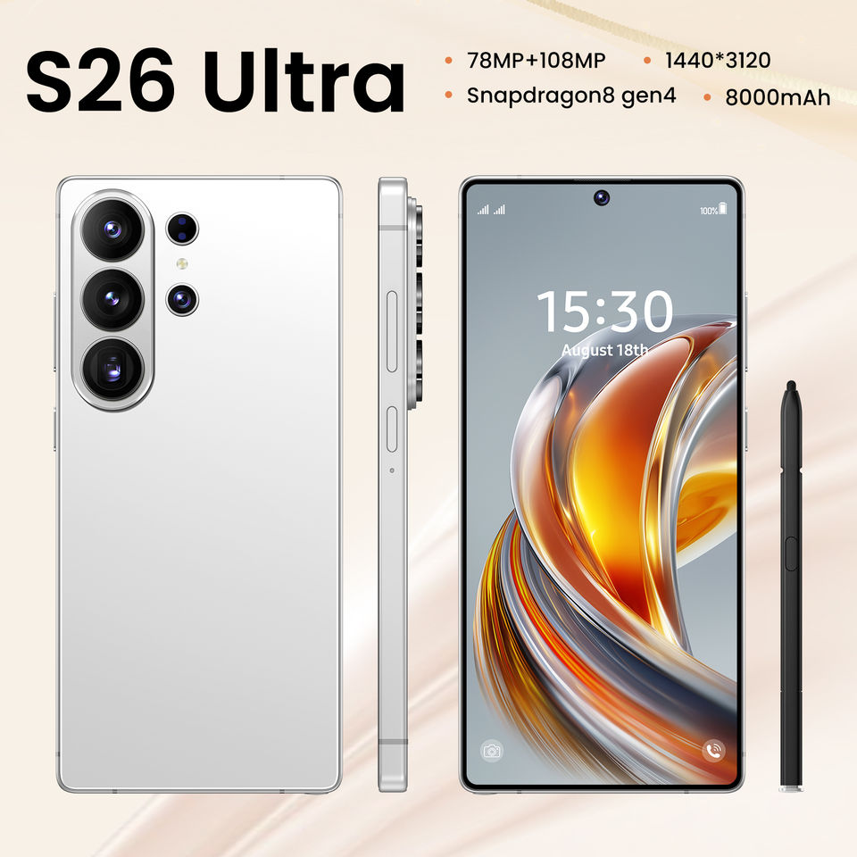 ราคาประหยัด s26 Ultra หน้าจอ LED 7.3 นิ้ว ความละเอียด 1440*3120 แบตเตอรี่ 8000mAh ช่องเสียบ Type-C รองรับการชาร์จเร็ว
