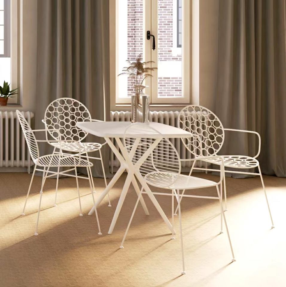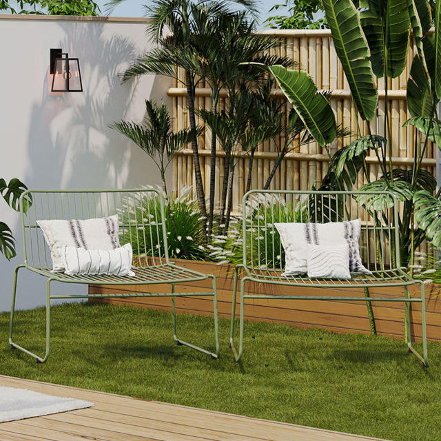 เก้าอี้ลวดโลหะแบบหุ้มต่ำสำหรับบรรยากาศที่ผ่อนคลายซึ่งสร้างขึ้นจากเหล็กดัดทำให้เหมาะสำหรับการติดตั้งบนดาดฟ้า