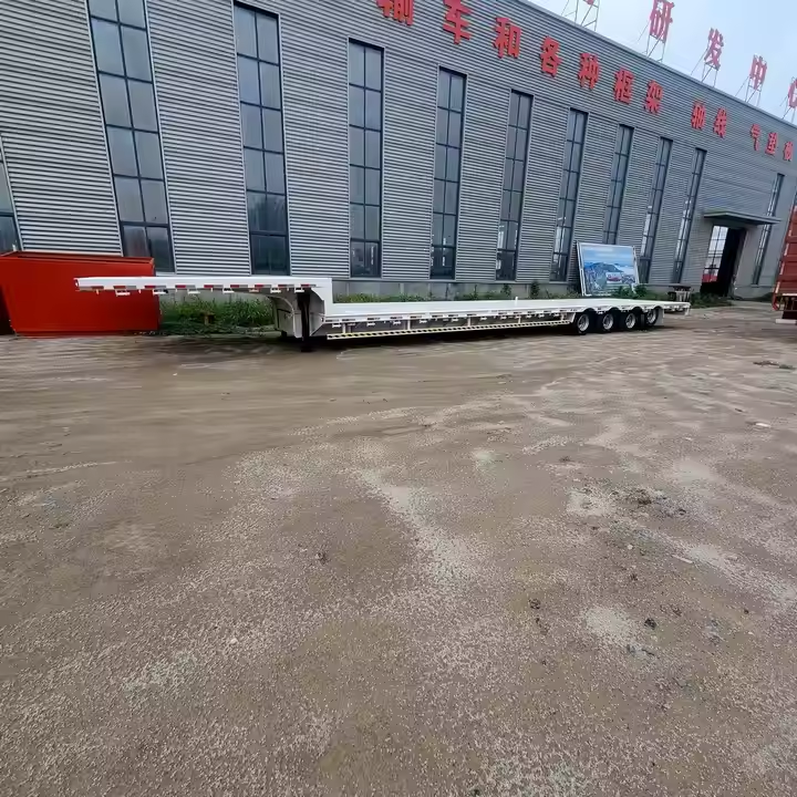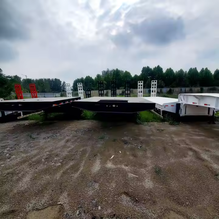 รถบรรทุกพ่วงพื้นเรียบสำหรับขนส่งรถขุด ราคาประหยัด พร้อมทางลาดไฮดรอลิก แบบ 3 4 5 เพลา รับน้ำหนัก 40 60 80 120 100 ตัน ขาย